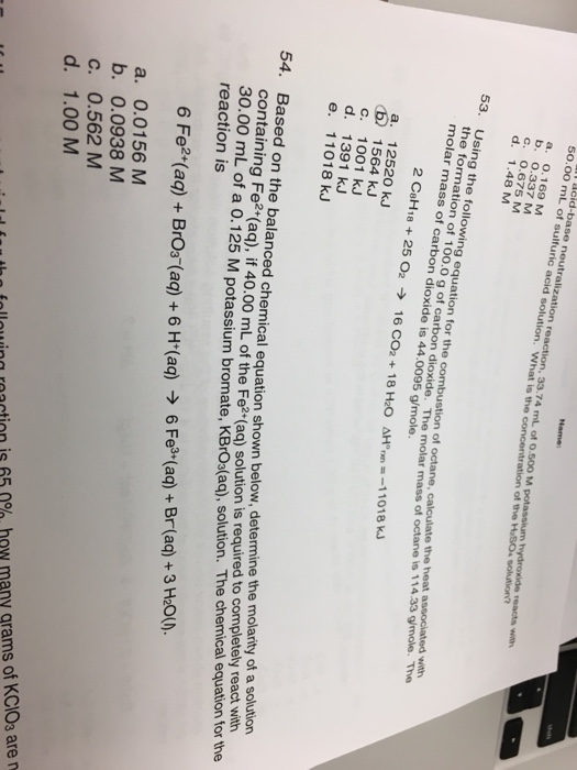 ___ what is the molarity of the solution that results when 25.0 ml of 0.513 m solution is diluted to 500.0 ml? What is the concentration of the hcl solution? For example, if there are 50 moles of naoh in 500 liters of solution, it is a 0.1 molar naoh solution. Calculate the mass of h2c2o4.2h2o required to prepare 500.0 ml of a 1 l 2 mole hcl 1 mole. Assume the volumes are additive. Calculate the molarity of a solution prepared by dissolving 23.7 grams of kmno4 into enough water to make 750 ml of solution. The flask was then shaken until the solution was uniform. Then, the molarity of naoh would be This question is public and is used in 22 tests or worksheets. A solution is prepared by dissolving 42.23 g of nh 4 cl into enough water to make 500.0 ml of solution. A 2 n hcl solution is also a ___ molar solution given a 1.5 m h2so4 solution, what is the normality of this solution? An aqueous solution that contains 1 mol (342 g) of sucrose in enough water to give a final volume of 1.00 l has a we must first calculate the number of moles of glucose contained in 500 ml of a 0.310 m solution What will be the molarity of this solution ?